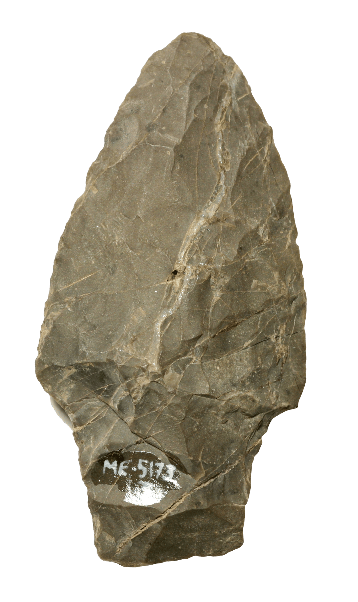 Grande pierre aviforme découverte à Pointe-du-Buisson. Sa partie postérieure est manquante (longueur : 11,8 cm).