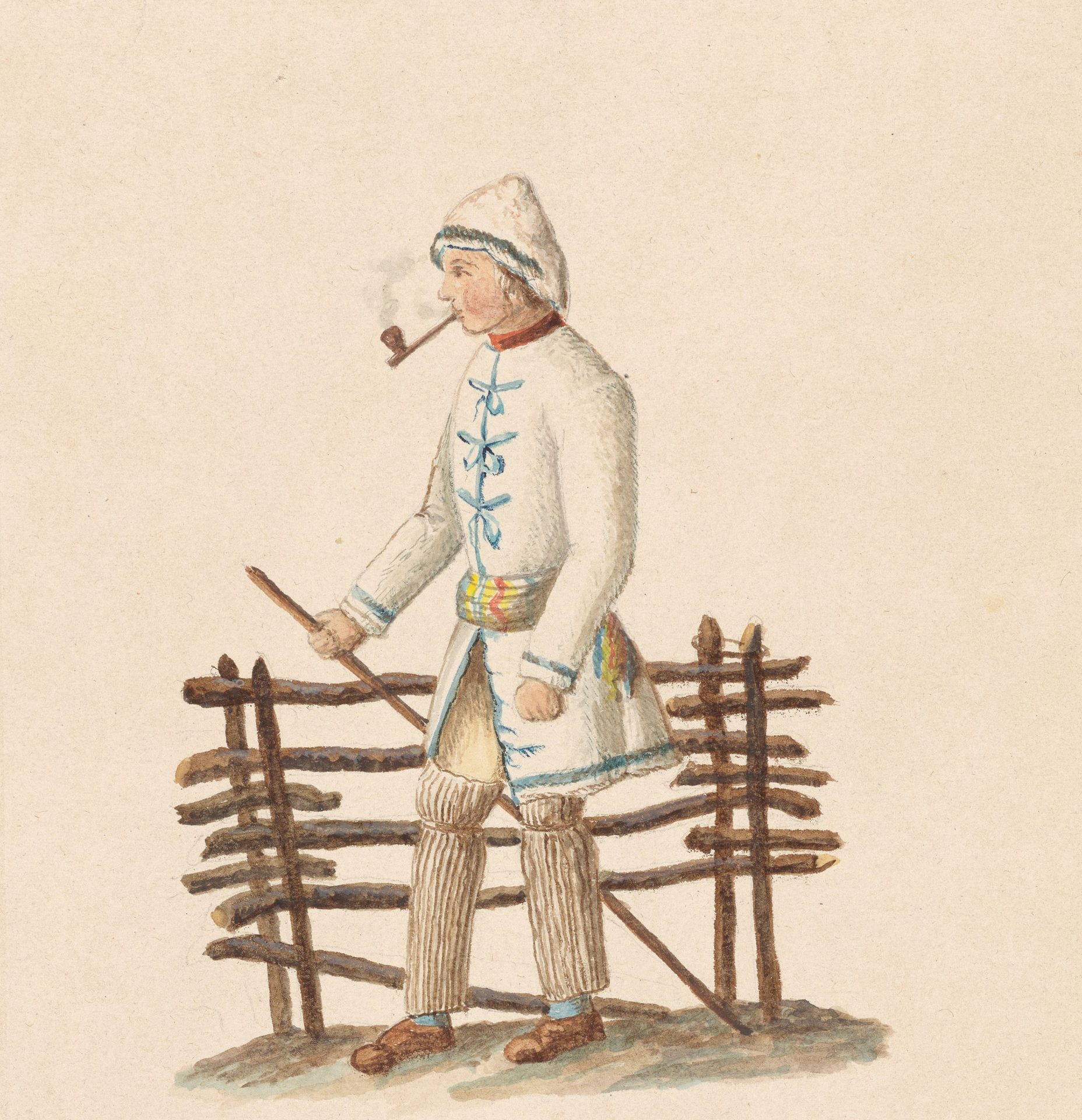 Au 18e siècle, l’habitant qui fume le calumet fait songer au voyageur des Pays-d’en-Haut qui s’affirme devant les métropolitains de plus en plus nombreux. Mais aussi devant les nouvelles générations qui côtoient moins l’univers autochtone, la traite s’éloignant de la vallée du Saint-Laurent. L’usage de cet objet d’inspiration autochtone pourrait référer à des valeurs associées aux grands espaces du continent américain comme la liberté, l’adaptation, l’indépendance, l’égalité et la résistance.