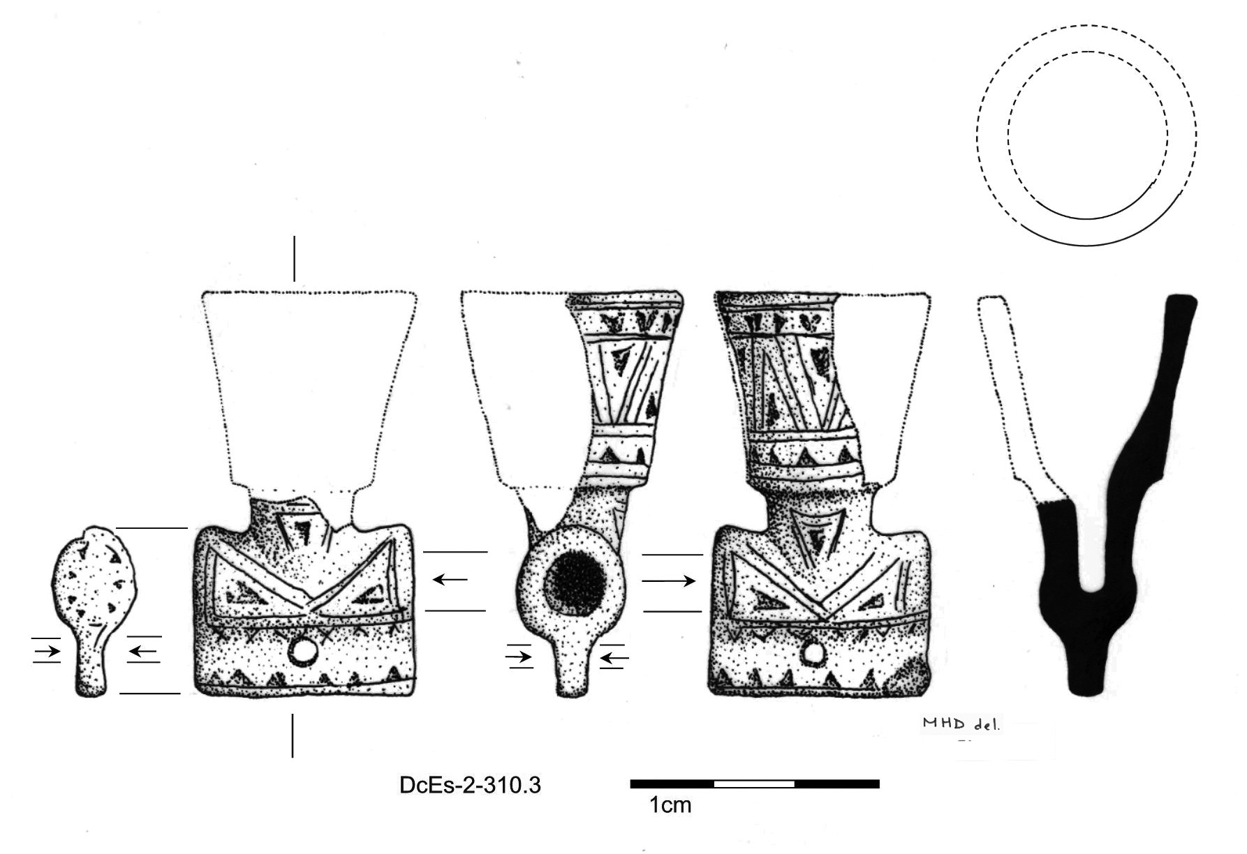 Ce type de pipe est en usage de la seconde moitié du 17e siècle jusqu’au milieu du 19e siècle. Sa popularité est à son apogée entre 1740 et 1770. Les nombreux spécimens trouvés pourraient témoigner d’une fabrication artisanale spécialisée dans la région de Québec, destinée particulièrement au réseau de la traite de Tadoussac.