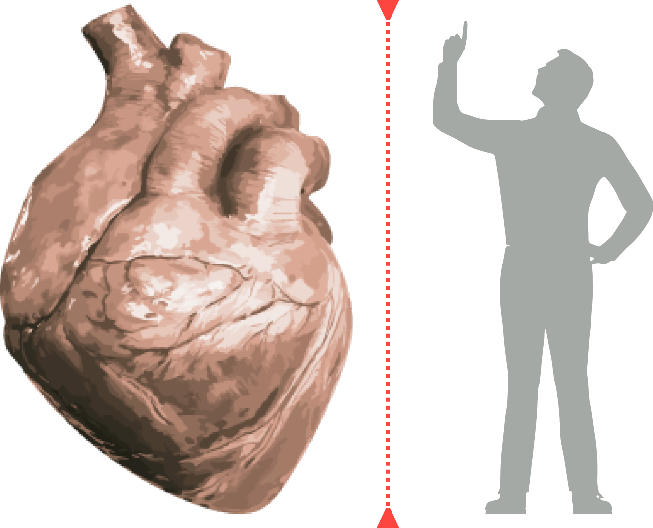 Avec ses 230 kg et son 1,8 m de circonférence, ce cœur pouvait pomper 90 litres de sang par battement, toutes les 5 secondes.
