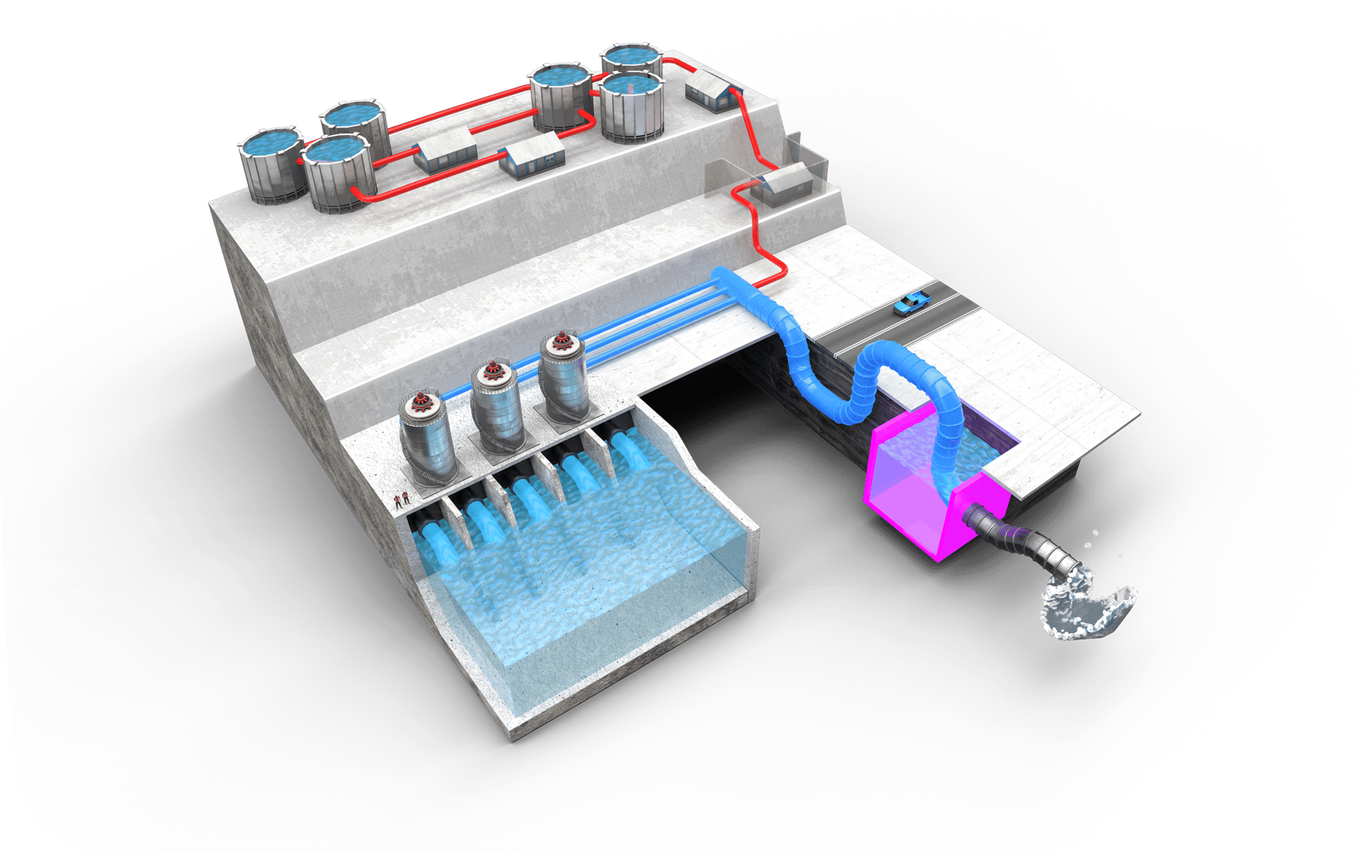 Tuyau sous-marin évacuant l’eau contaminée à 1 km du rivage