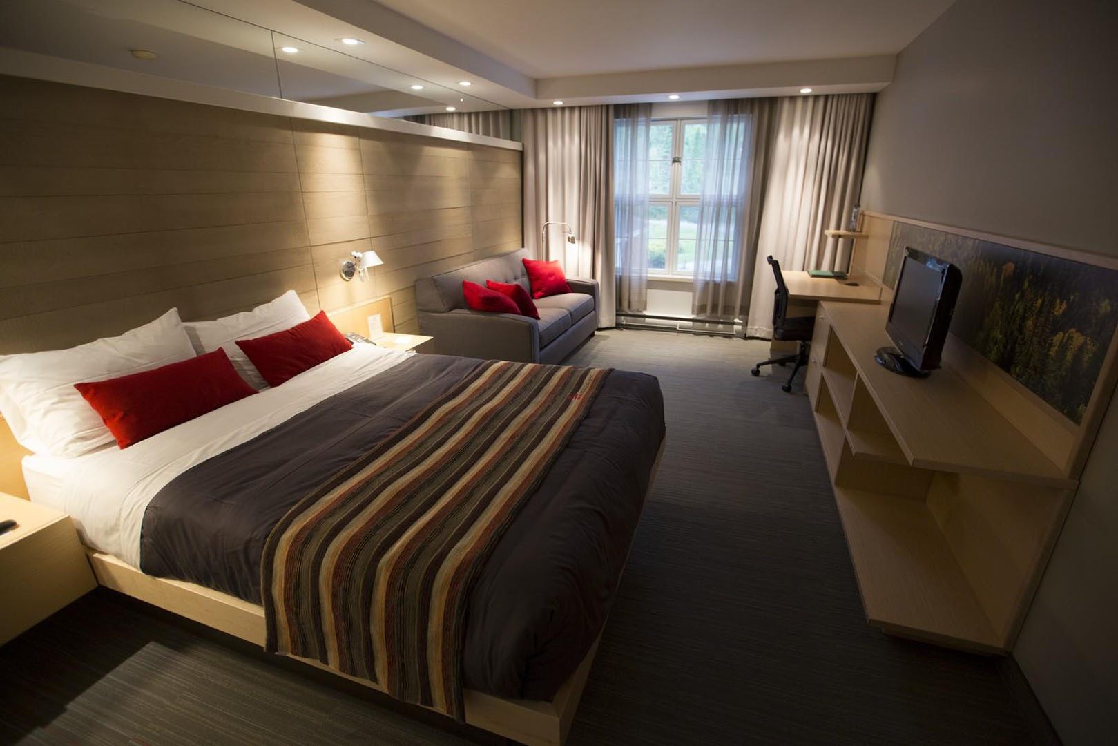Chacune des 48 chambres de l’auberge est orientée pour que vous puissiez admirer le mont Albert dans toute sa splendeur à travers la fenêtre.