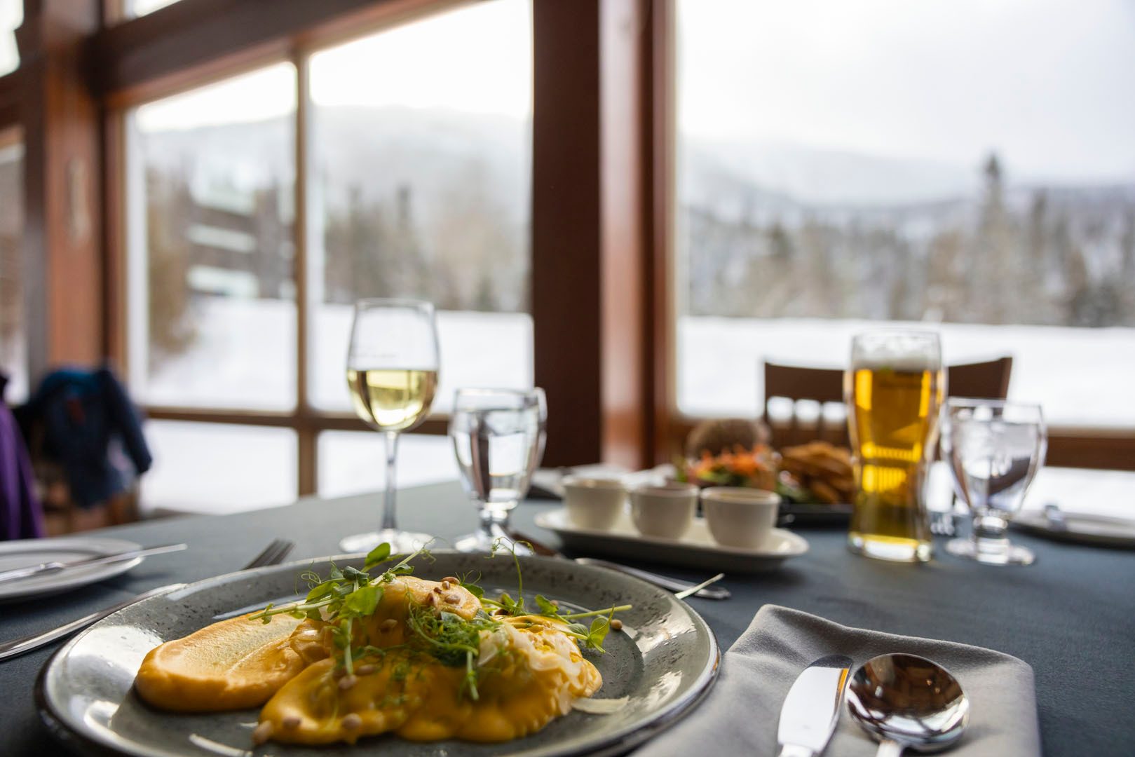 Après une belle journée dans les montagnes, profitez du bistro-bar du Gîte et installez-vous au bord du foyer afin de profiter de la vue incroyable en sirotant une bière ou un café.