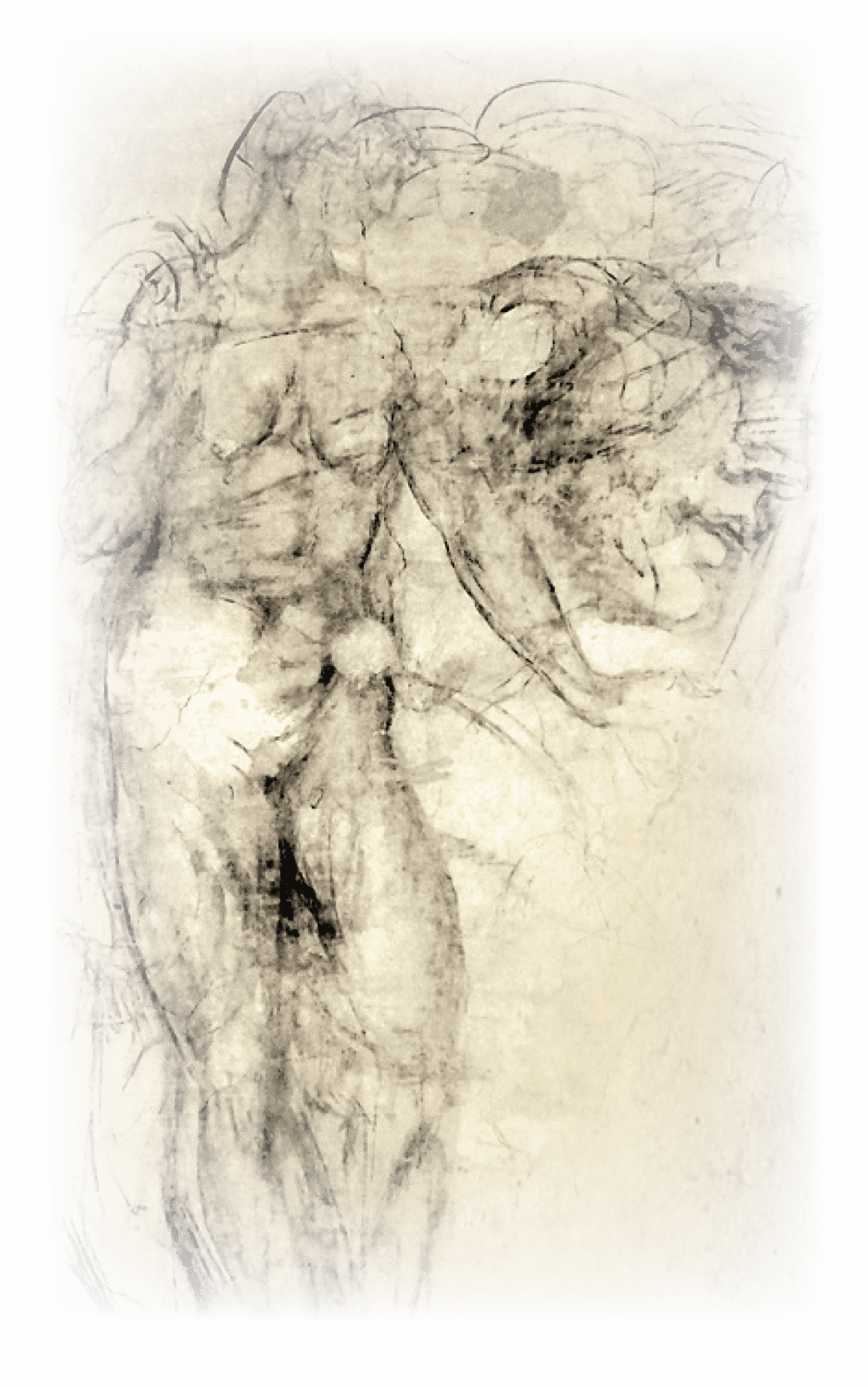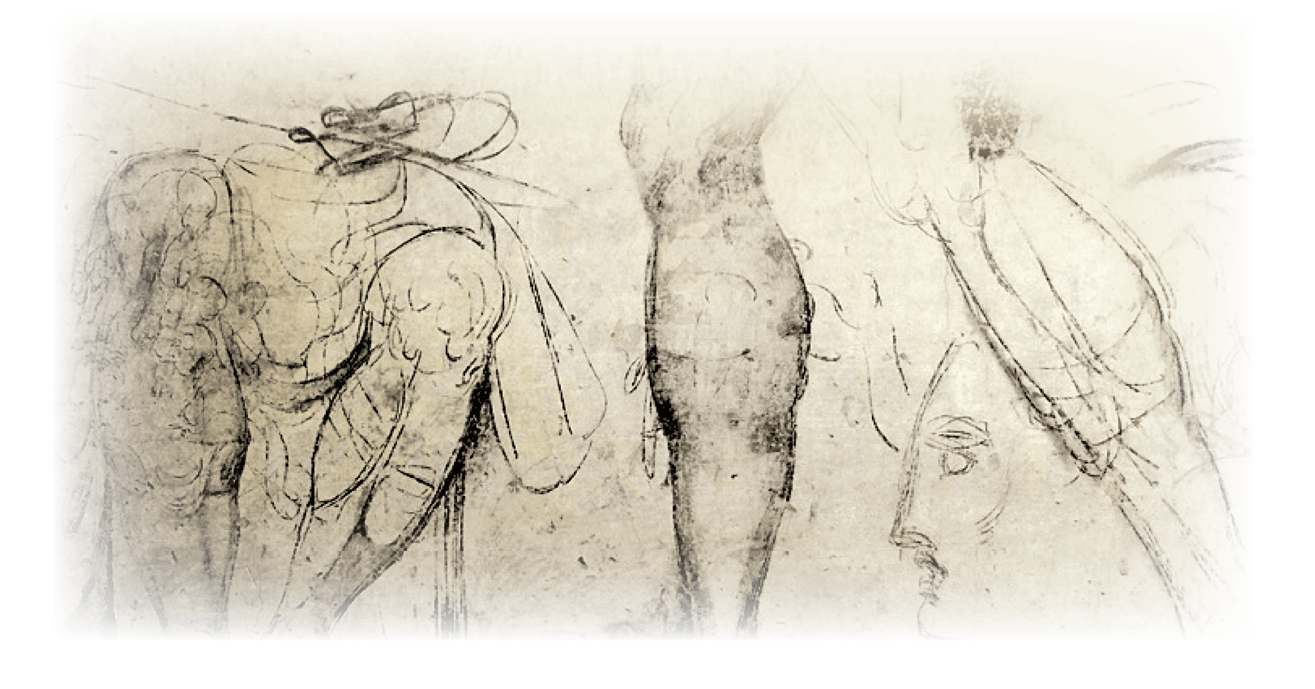présente un croquis qui ressemble à une statue du prêtre troyen Laocoon et de ses fils – une œuvre d'art ancienne qui a inspiré Michel-Ange.