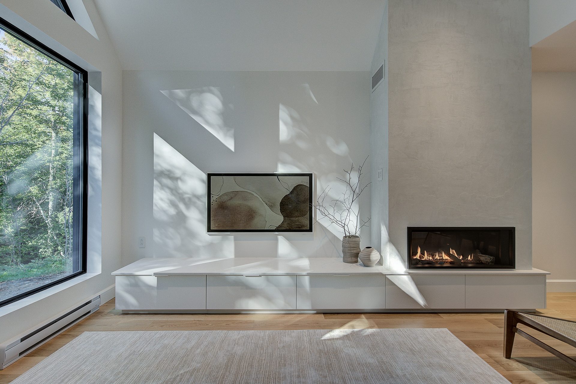La réalisation du projet Jutras consistait à rénover un salon des années 2000 pour en faire un espace de vie au goût du jour. Les photos avant et après du projet sont garantes de sa réussite!
