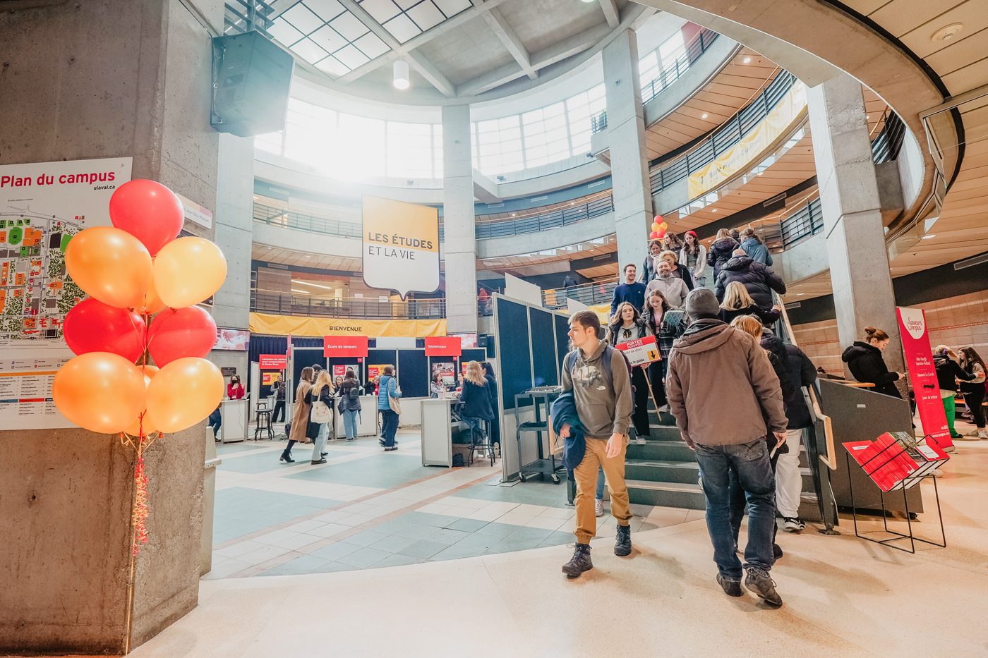 - Kiosques d’information regroupant les différentes facultés, les services à la communauté étudiante et les associations.